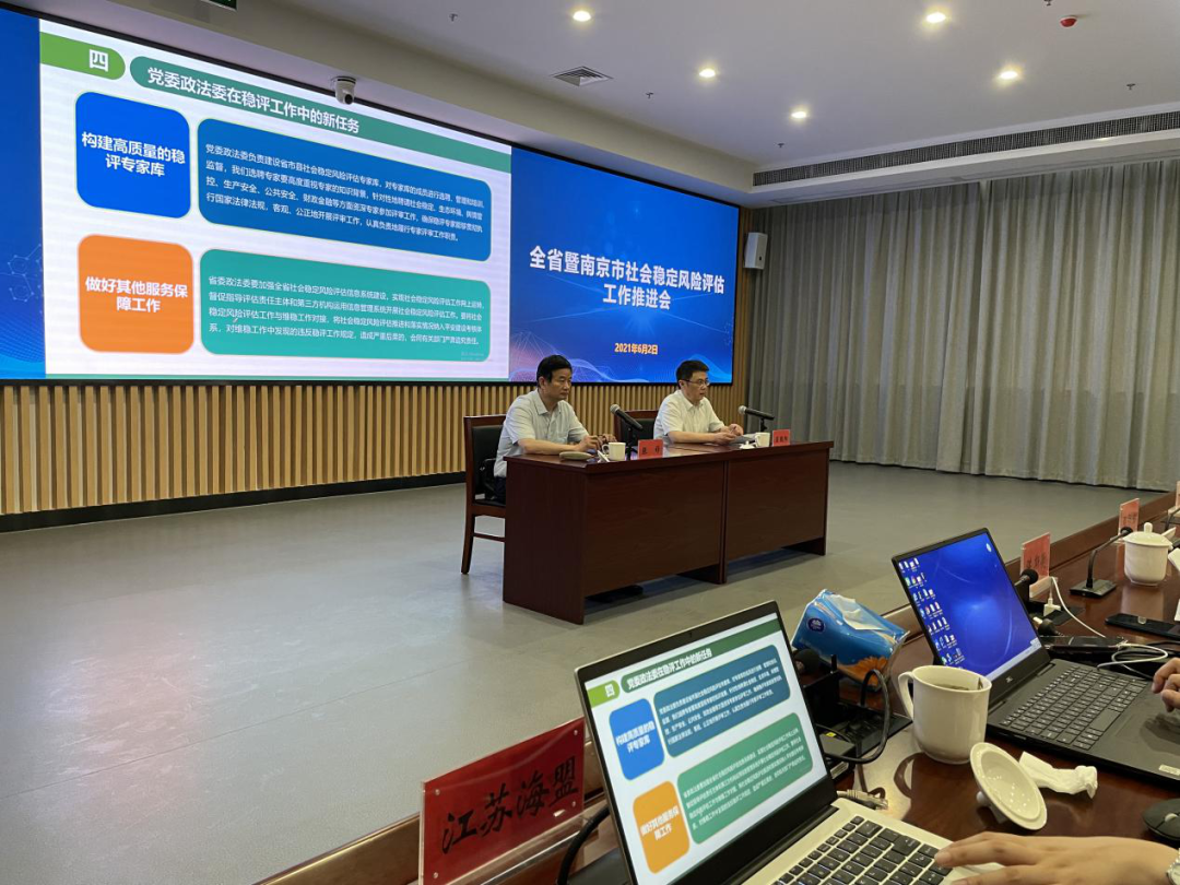 2021年6月2日,江蘇省暨南京市社會穩定風險評估工作推進會在南京網格學院召開,江蘇省政法委、全省十三個地市維穩指導處負責人及南京市各區縣政法委相關負責人出席本次會議。
