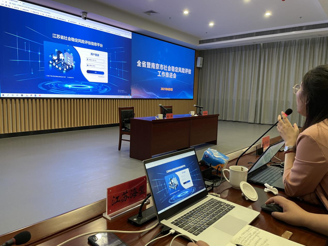 海盟高科作為江蘇省社會穩定風險評估平臺承建方應邀參加,相關項目負責人對平臺總體架構及系統運行情況作了專題培訓和工作匯報。