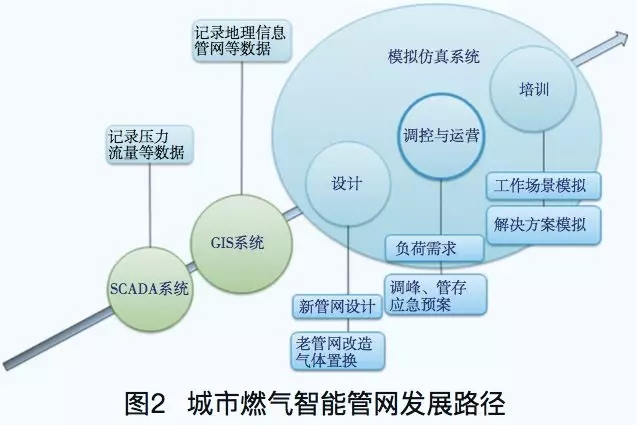 圖2是城市燃氣智能管網的發展路徑。