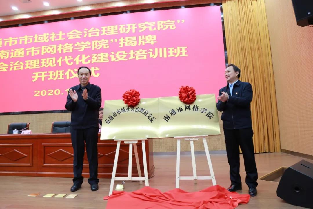 12月16日上午,南通市市域社會治理研究院、網格學院揭牌儀式暨首期市域社會治理現代化建設培訓班開班儀式在南通市委黨校舉行。市委常委、政法委書記姜永華,市委黨校常務副校長、行政學院副院長蔣建為“兩院”揭牌。