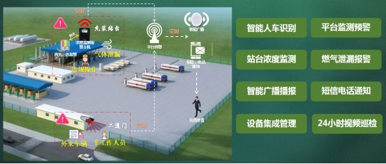 對場站的出入通行進行嚴格的管控,借助人臉識別、車輛識別、視頻監控等裝置對場站內外人員車輛狀態信息進行動態管理;在二道門外借助LED顯示及廣播系統,展示安全監管信息、發布異常監管數據、提示違規操作、播放違規企業信息及安全告知信息等;結合地理信息系統,展示生產環境、使用環境中燃氣泄露報警及故障信息,報警信息包括安裝地點、詳細位置、設備狀態、報警時間等。結合報警處置情況,可綜合展示今日報警及已處理情況、今日故障及已處理情況等。通過精細化的部署及監管,使管理部門對場站運行的實際情況得到充分了解,從而規避和降低可能發生的各類風險。